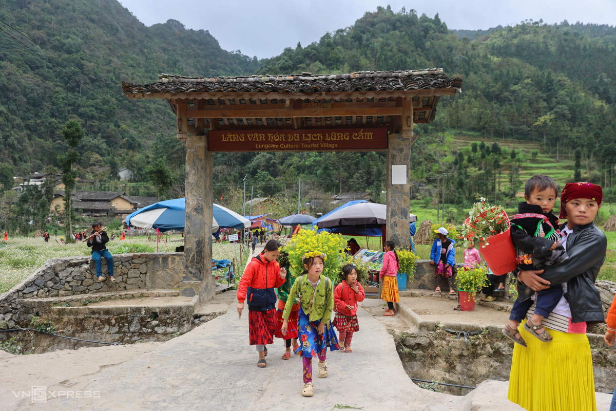Làng văn hóa du lịch Lũng Cẩm không thu vé tham quan, khách chỉ cần trả thêm chi phí vé nếu vào tham quan 'nhà của Pao' với giá 10.000 đồng một người và mất thêm phí từ 10.000 đến 30.000 đồng nếu chụp ảnh ở các vườn hoa.