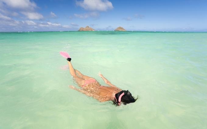 Du khách sẽ mất khá nhiều thời gian đi bộ tới Lanikai, vì ở bãi biển này không hề có bãi đỗ xe. Con đường dẫn tới Lanikai đi qua một trong những khu dân cư sang trọng nhất trên đảo Oahu, nơi có nhiều biệt thự sơn màu trắng với bể bơi riêng. Nước biển Lanikai có màu xanh ngọc và ấm áp dưới ánh nắng, rất lý tưởng cho du khách lặn với ống thở. Ảnh: Roughguides.