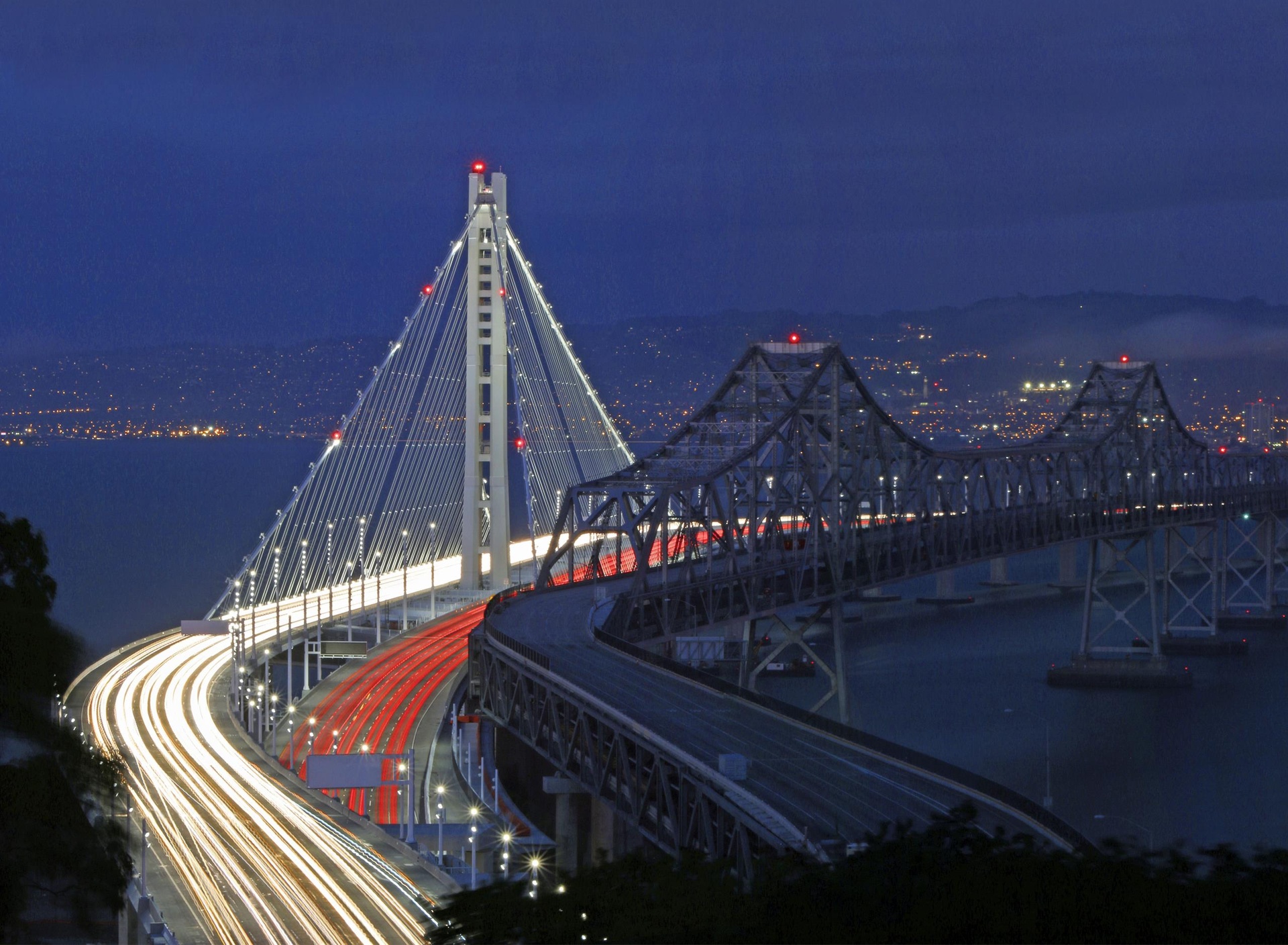 Ảnh: Mott MacDonaldCầu qua vịnh San Francisco - Oakland, Mỹ: Khánh thành năm 1936, kéo dài hơn 13,4 km, kết nối 2 thành phố San Francisco và Oakland. Điểm cao nhất của cây cầu là trục tháp cao tới 160 m, màu trắng, tỏa sáng mỗi đêm bởi hệ thống đèn lung linh.