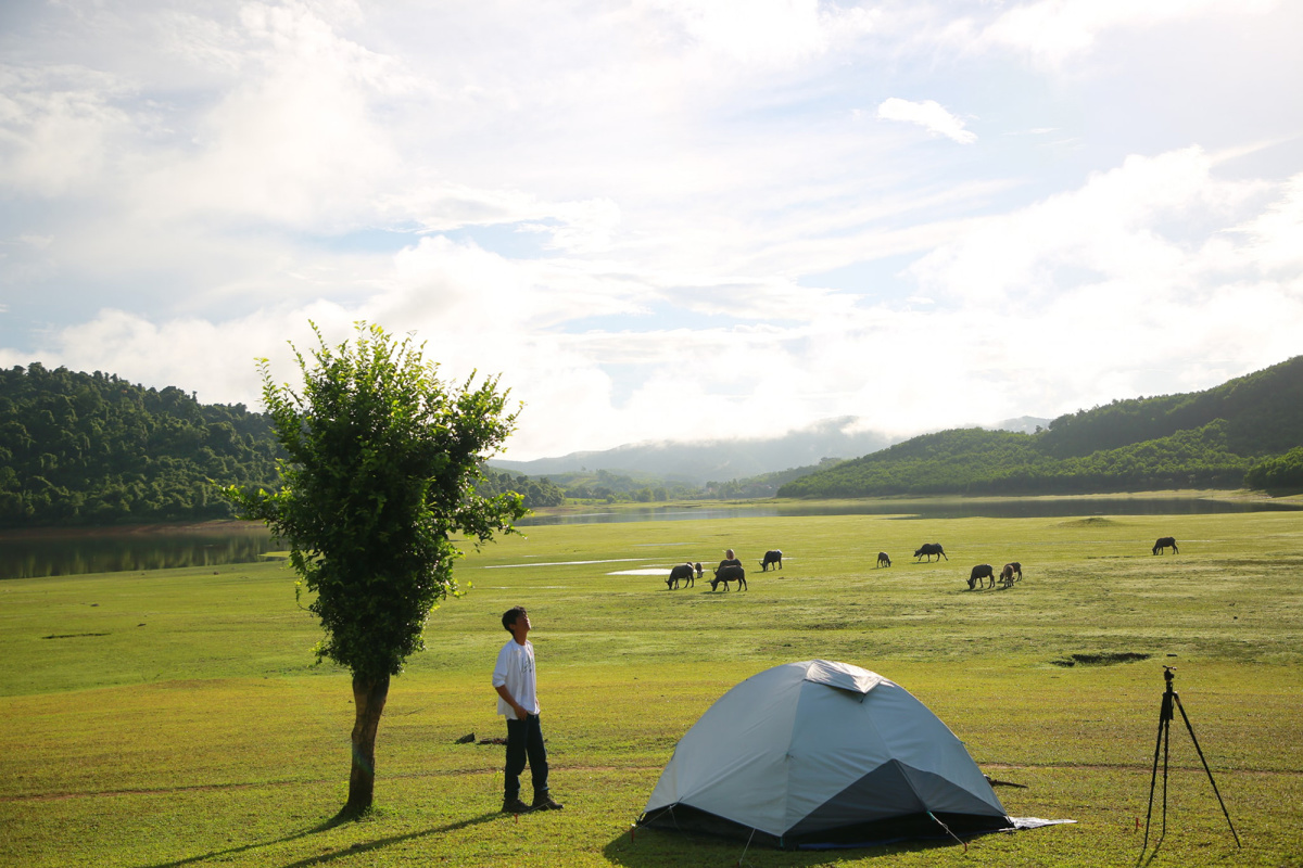 Hồ Sông Mực nằm trong vườn quốc gia Bến En, nơi có đồng cỏ rộng xanh ngút tầm mắt, là địa điểm cắm trại mát mẻ, yên bình và không đông đúc.