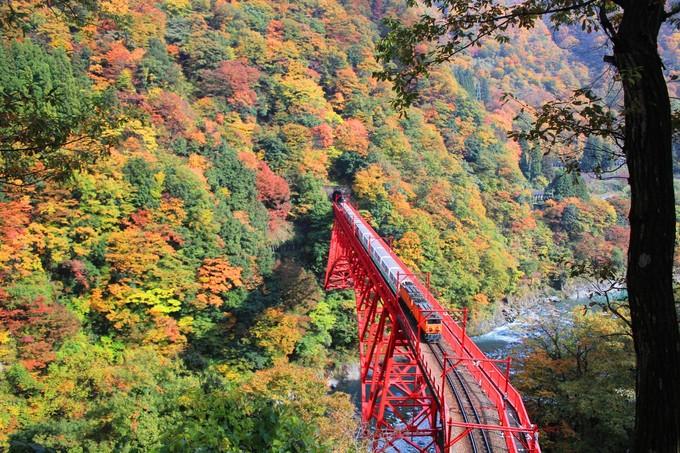 Kurobe - nơi có đường tàu điện chạy qua đẹp nhất Nhật Bản, thuộc dãy Alps Nhật ở tỉnh Toyama. Chuyến tàu ngắm cảnh Kurobe Gorge Trolley Train chạy từ tháng 4 đến tháng 11 hàng năm, đi qua 20 km trong 80 phút là trải nghiệm mà du khách không thể bỏ lỡ. Chuyến tàu lướt qua vô số cây cầu, đường hầm uốn lượn ở hẻm núi Kurobe.