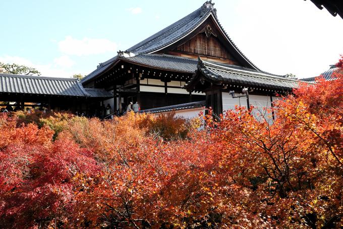 Cố đô Kyoto được mệnh danh là điểm ngắm lá đỏ đẹp nhất Nhật Bản vào mùa thu. Trong đó đền Tofukuji là một trong số những ngôi đền có cảnh quan cuốn hút nhất với hơn 20.000 m2 vườn rợp bóng cây. Du khách tới đây thường chọn cây cầu Tsutenkyo để ngắm cảnh và chụp ảnh.