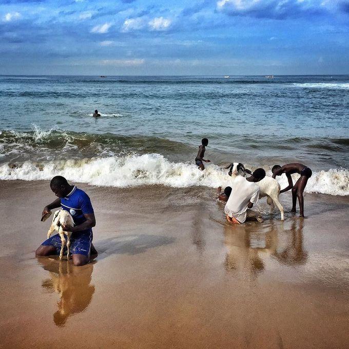 Ngay cả những con cừu cũng lướt sóng - nhưng chỉ vào chủ nhật hàng tuần, theo New York Times. Nếu đến thủ đô Dakar vào chủ nhật, du khách sẽ thấy nông dân dẫn đàn cừu ra bờ biển để thực hiện nghi lễ gột rửa. Chúng sẽ được tắm sạch sẽ, sửa móng và bơi lội thỏa thích với sóng trước khi quay trở lại cuộc sống đồng cỏ thường ngày. Ảnh: Pinterest.