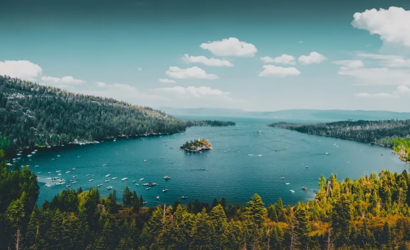 Hồ Tahoe, California, Mỹ: Hồ Tahoe được biết đến là điểm du lịch hồ phổ biến nhất ở Mỹ. Sự nổi tiếng này đến từ phong cảnh thiên nhiên của hồ và những cuộc phiêu lưu thú vị mà du khách có thể trải nghiệm. Nằm ở biên giới California - Nevada, hồ Tahoe có nhiều danh hiệu như hồ trên núi cao và lớn nhất Bắc Mỹ hay hồ sâu thứ hai ở Mỹ.