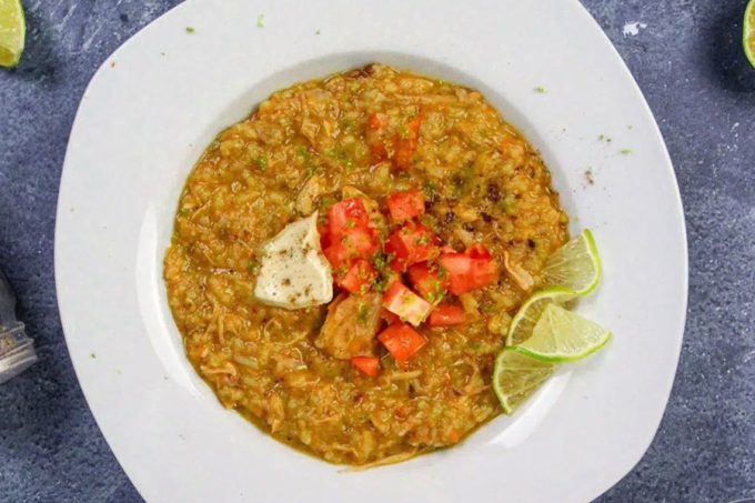 Madrouba là một món ăn truyền thống khác của người địa phương, được ăn bất kỳ lúc nào và ở bất kỳ đâu. Về cơ bản, món ăn gồm thịt gà, sữa, bơ và bạch đậu khấu ninh nhừ, tạo thành một hỗn hợp nhuyễn như khoai tây nghiền. Bạn có thể dễ dàng tìm thấy món ăn ở mọi nhà hàng tại Qatar, với cùng nguyên liệu như nhau nhưng hương vị khác nhau, phụ thuộc vào từng đầu bếp. Ảnh: Chef's Pencil