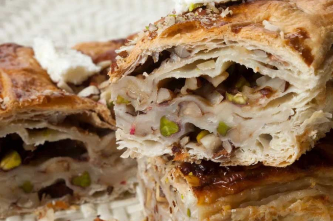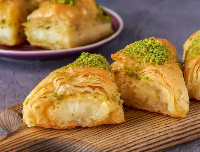 Kunafa là loại bánh phô mai được ăn với sirô đường. Hiếm một sự kiện trọng đại hay buổi tụ tập nào, Kunafa lại không xuất hiện, từ đám cưới, đám tang, tháng lễ Ramadan cho đến bữa sáng hay bữa nhẹ ngoài trời... Ảnh: Chef's Pencil