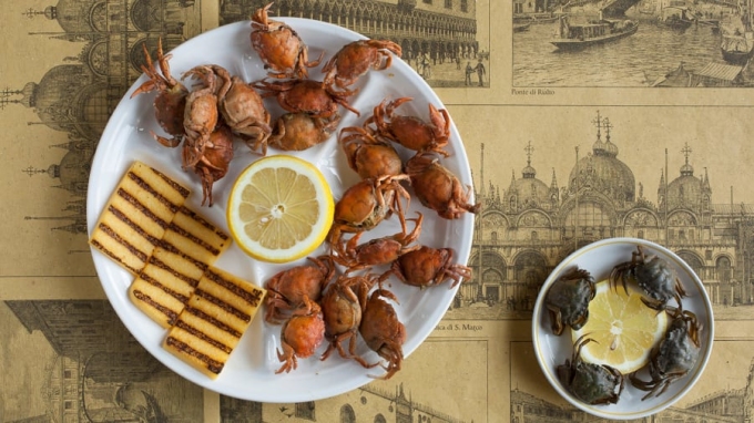 Ghé thăm Venice vào cuối mùa xuân (tháng 5) hoặc đầu mùa thu, bạn không chỉ cảm thấy mình thật may mắn vì thời điểm này ít khách du lịch, mà vì còn đến đúng mùa moeche. Đây là tên gọi của những con cua nhỏ đang đến giai đoạn lột vỏ, được đánh bắt từ đầm phá. Ngư dân thường thu hoạch loài cua này trên đảo Burano, Giudecca và Chioggia. Moeche thường được ăn nguyên con, đầu bếp sẽ nhúng chúng vào bột mì trộn trứng trước khi chiên. Khi ăn, thực khách dùng kèm với chanh. Ảnh: Adobe stock