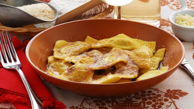 Casoncelli là đặc sản đến từ vùng Lombardy, được biết đến là một loại mỳ nhồi có vỏ là sợi mỳ gập lại dài khoảng 4 cm, bên trong nhân thịt xay với vụn bánh mì, phô mai... Nếu phục vụ những người ăn chay, nhân thịt được thay thế bằng nhục đậu khấu. Thay vì phủ lên chúng một loại nước sốt, người ta dùng bơ. Ảnh: Adobe Stock