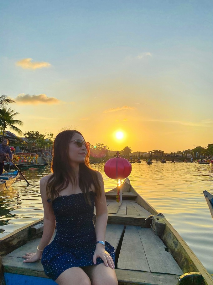 Sau đó, nữ du khách quay lại Hội An, chụp ảnh hoàng hôn ở quán cà phê trên đường Trần Phú, đi thuyền trên sông và chụp ảnh với đèn lồng.