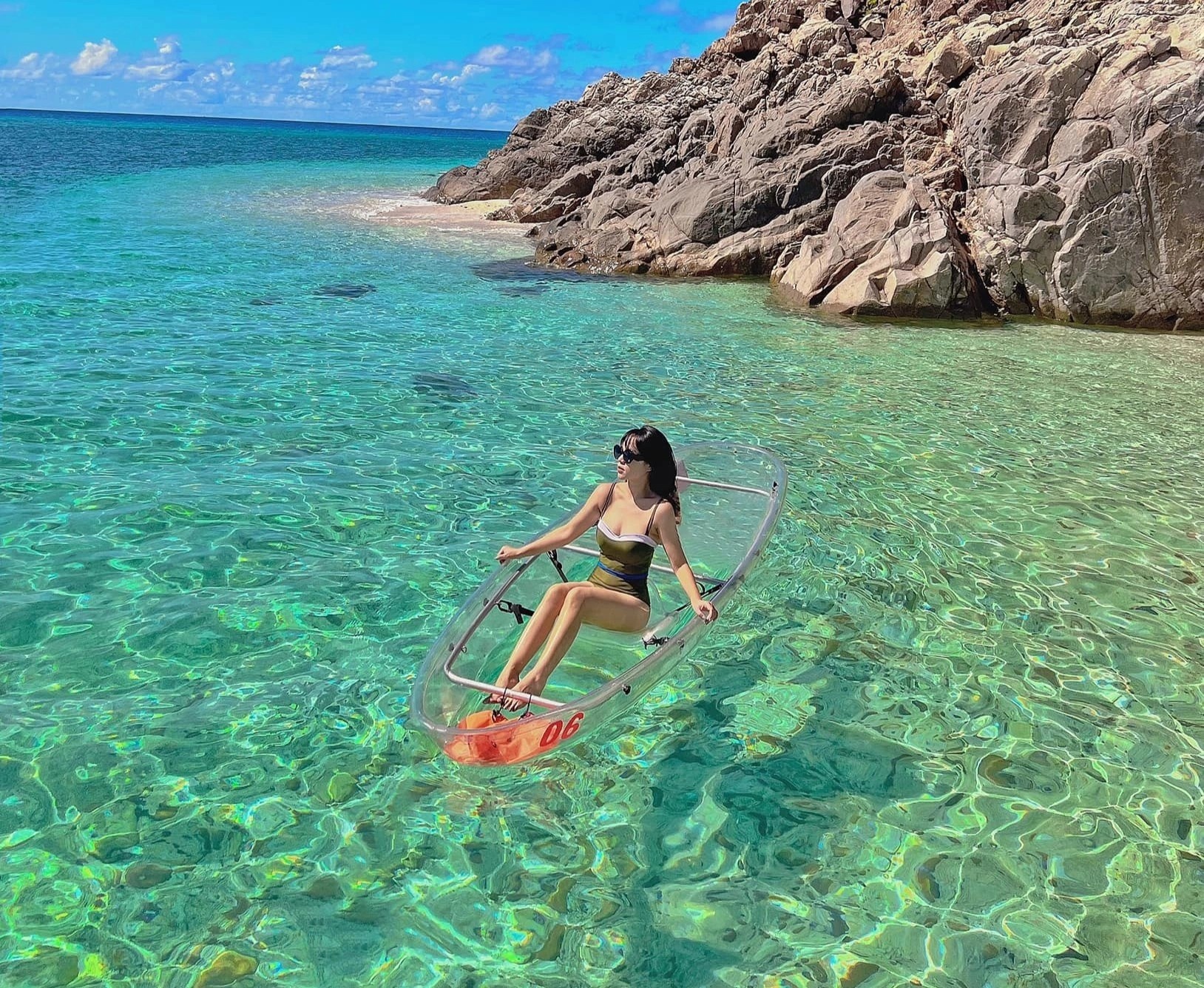 Tại Côn Đảo, bạn có thể nâng cấp trải nghiệm của mình với thuyền kayak trong suốt. Khác với loại thông thường, thuyền được làm bằng chất liệu chuyên dùng để thiết kế cửa sổ máy bay, trong suốt và cứng cáp.
