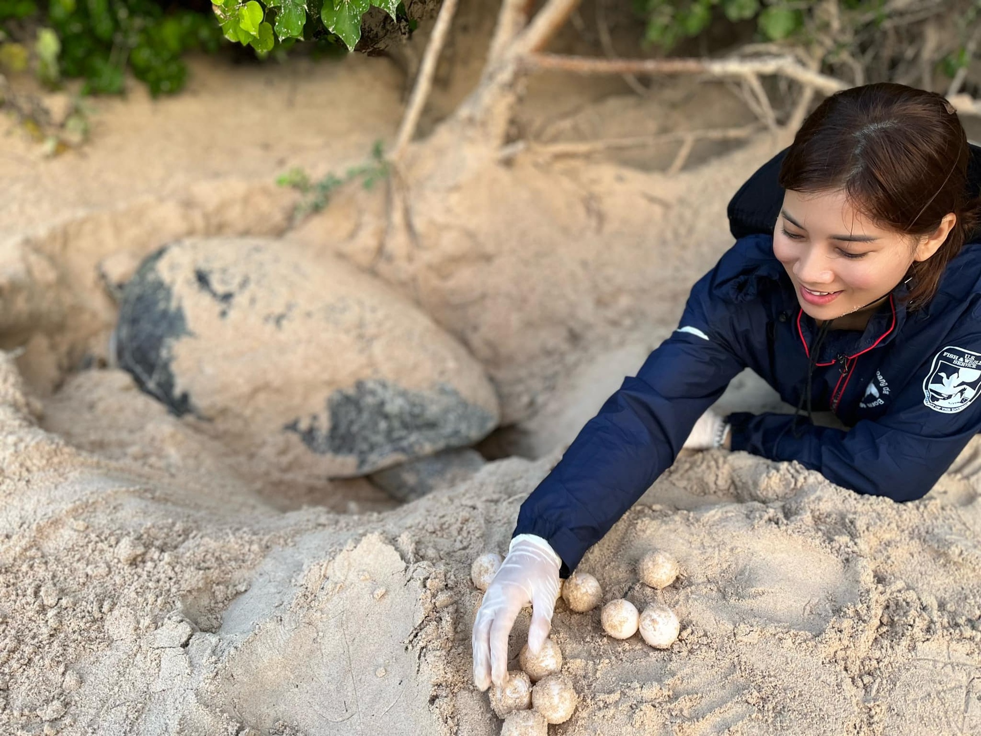 Ảnh: Nguyễn Hồng Trâm. Trong suốt quá trình xem rùa đẻ trứng, bạn cần tuân thủ tuyệt đối các quy định như: giữ im lặng, không được chạm vào rùa mẹ, không sử dụng đèn flash...