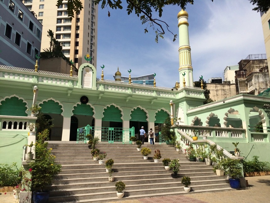 Ảnh: wikimedia. Thánh đường Jamia Al-Musulman được xây dựng lần đầu tiên vào năm 1935 và được coi như một trong những nhà thờ Hồi giáo lớn tại TP.HCM. Trong quá khứ, sự tồn tại của nơi này nhằm mục đích phục vụ người Hồi giáo từ miền Nam Ấn Độ sống trong thành phố.