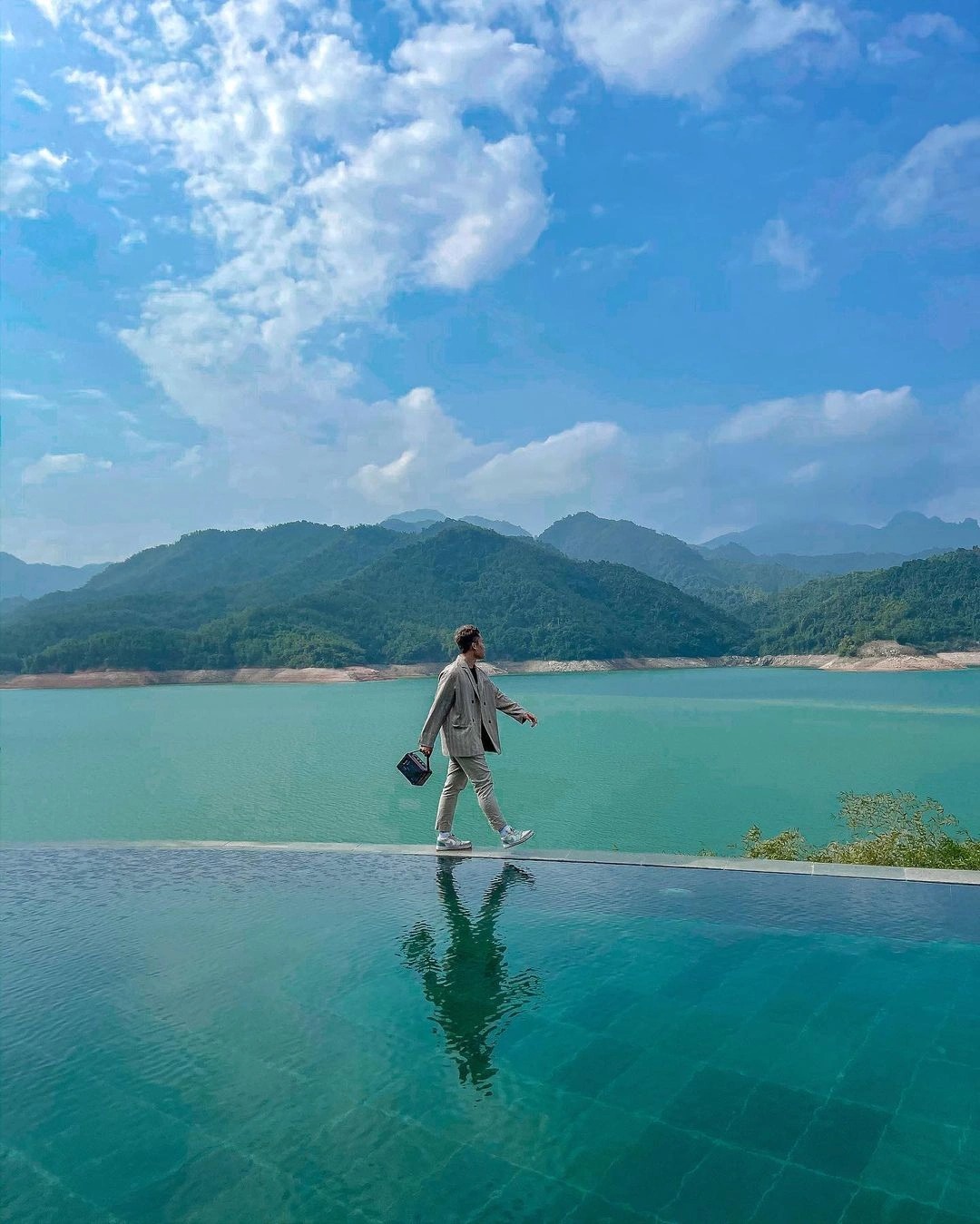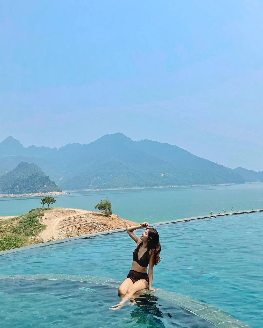 Đắm mình trong bể bơi vô cực tại đây, bạn có thể phóng tầm nhìn ra thung lũng xanh và lòng hồ sông Đà, cảm nhận toàn cảnh thiên nhiên hữu tình, tráng lệ của Hòa Bình.