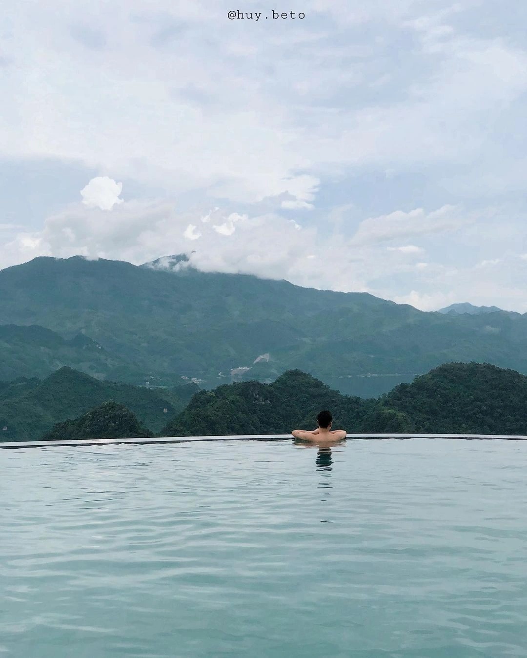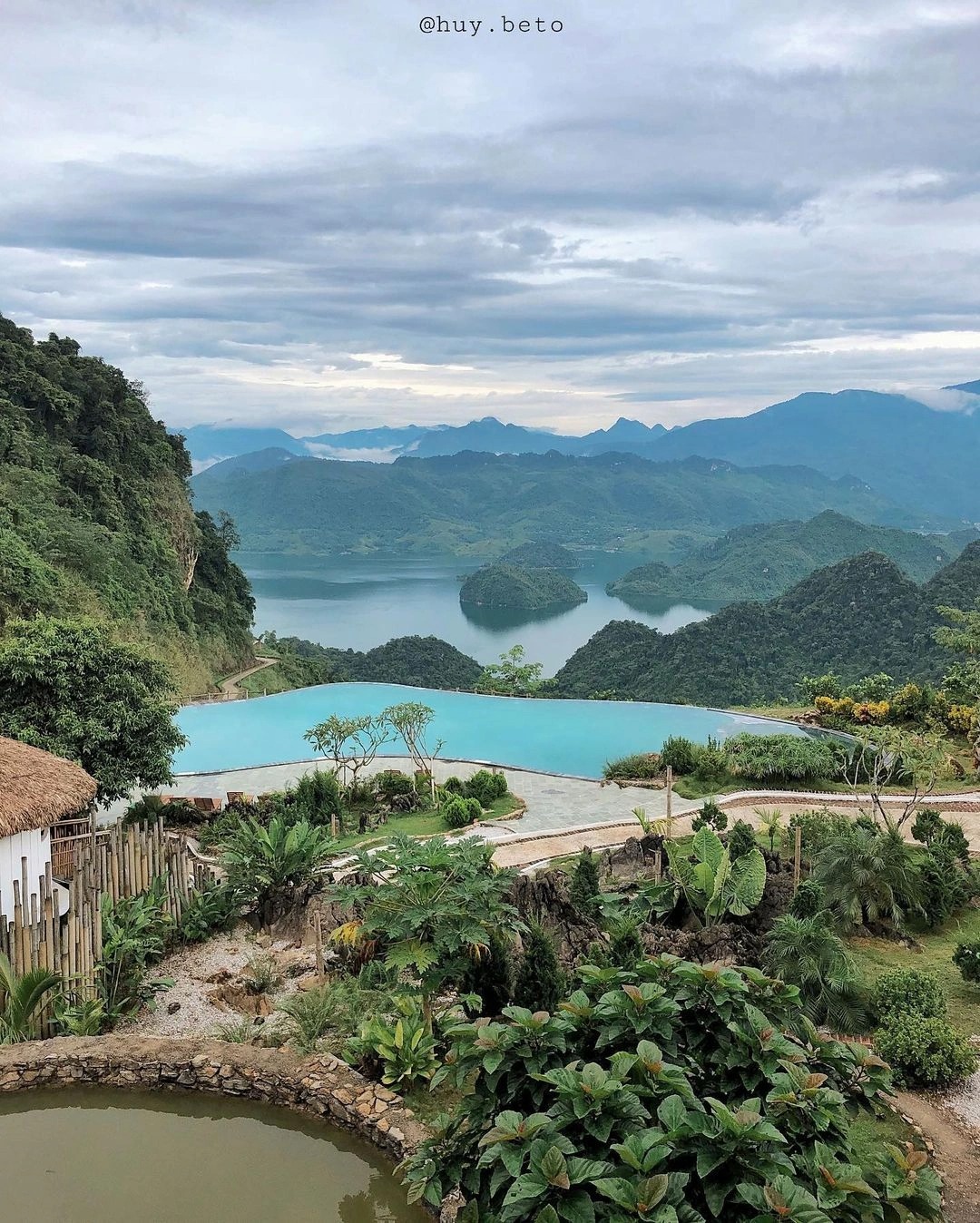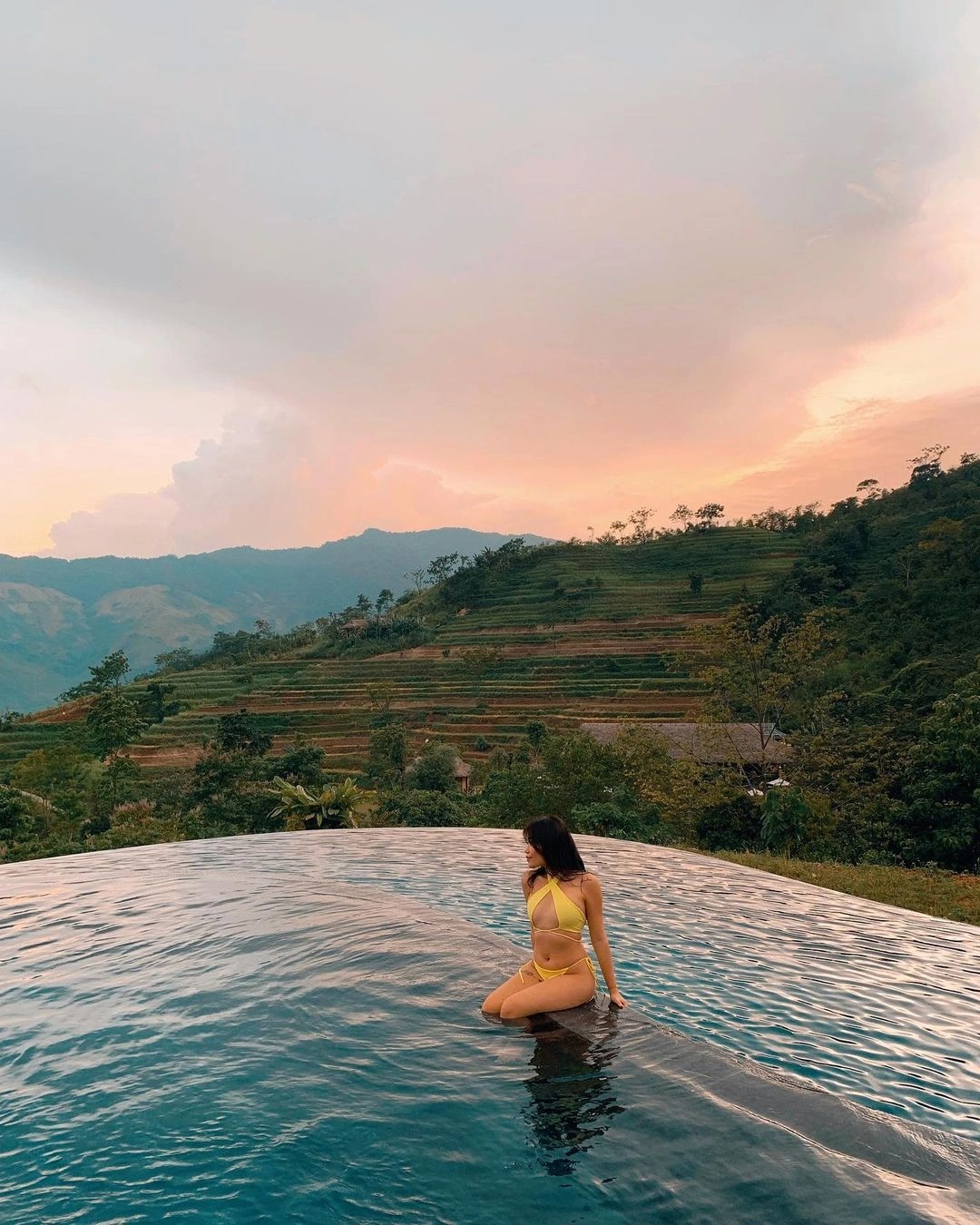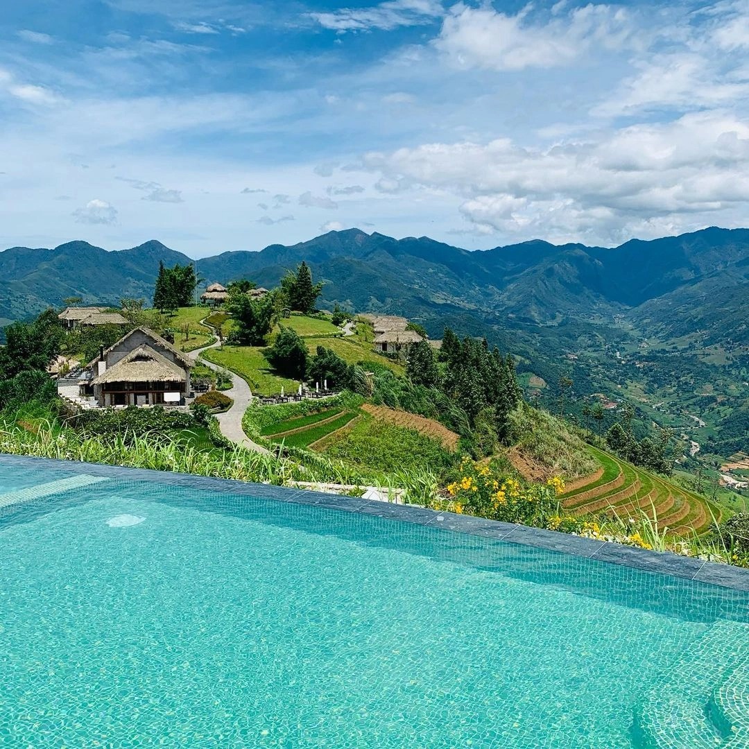 Bể bơi vô cực tại đây nằm ở độ cao khoảng 900 m, tạo nên tầm nhìn ôm trọn những đỉnh núi hùng vĩ và thửa ruộng bậc thang trải dài vô tận. Bể bơi sử dụng nước mặn và được làm nóng, đảm bảo nước bể bơi ấm quanh năm, phù hợp với khí hậu mát lạnh trên núi cao.