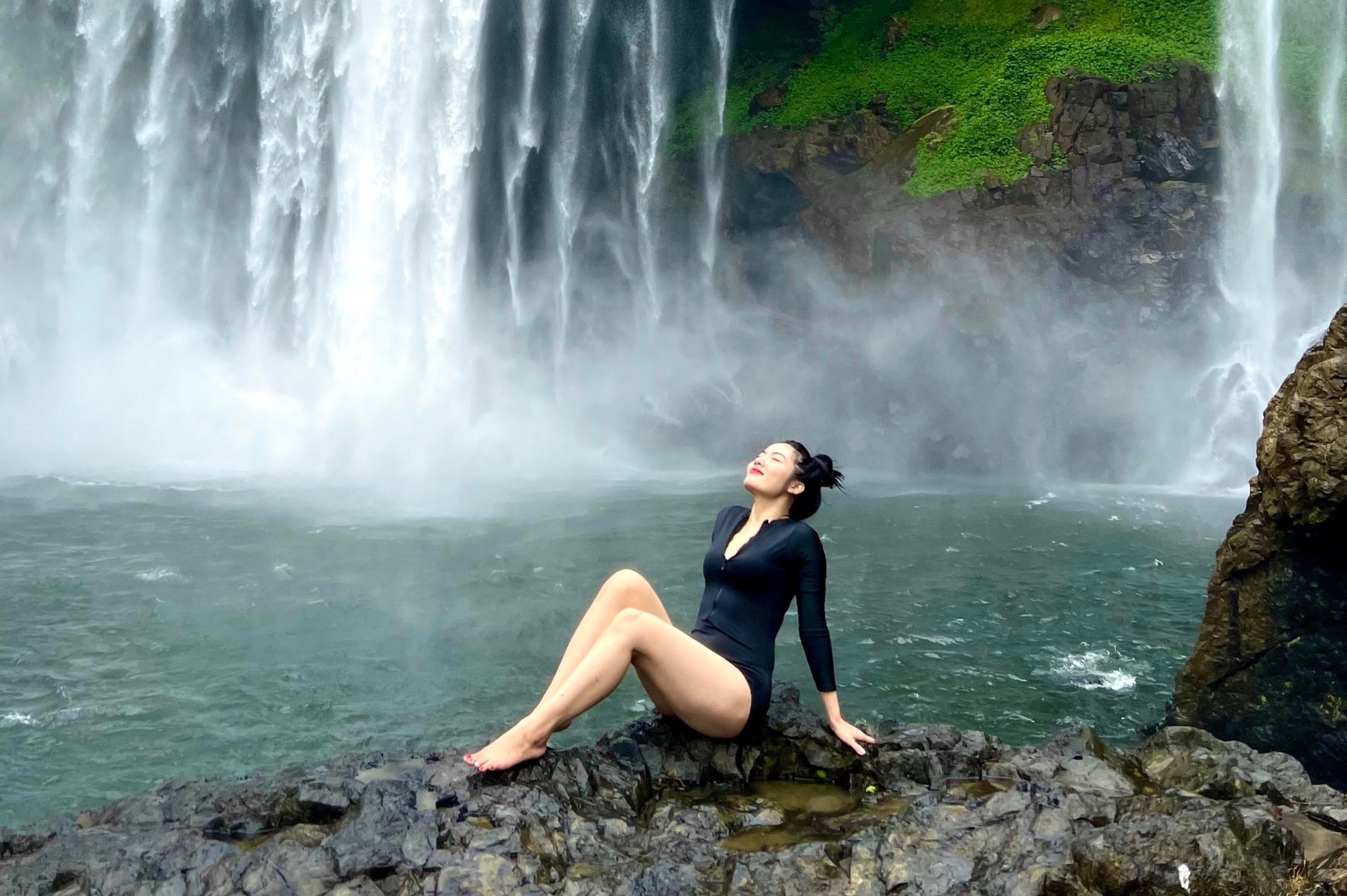 Bảo Ngân check-in tại thác Pa Sỹ (Kon Tum) đầu tháng 5 - Ảnh: Ngân Đi Lạc