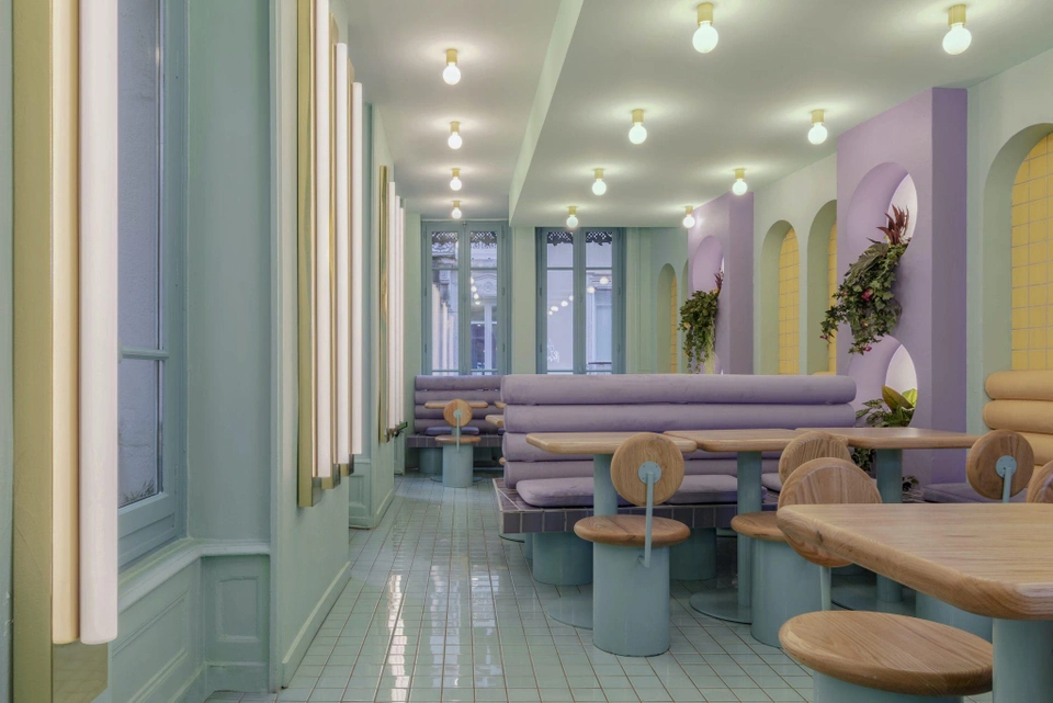 Cơ sở thứ 2 của nhà hàng Piada tại Lyon (Pháp) gây ấn tượng cho thực khách với tông màu pastel vui tươi, nhẹ nhàng. Ở đây sử dụng mái vòm cuốn cùng nội thất bằng gỗ.