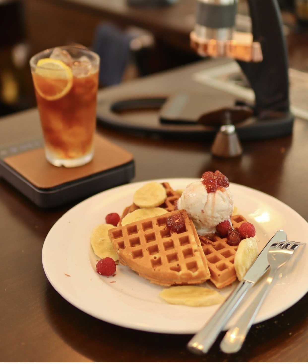 - Nhìn chung, giá cả phù hợp với chất lượng thức uống. Dirty coffee có vị luân phiên giữa hơi nóng từ espresso, cái lạnh của sữa đông lạ miệng. Món bánh waffle bơ và chuối phủ sốt chanh dây nướng thơm phức, cốt bánh mềm, xốp.