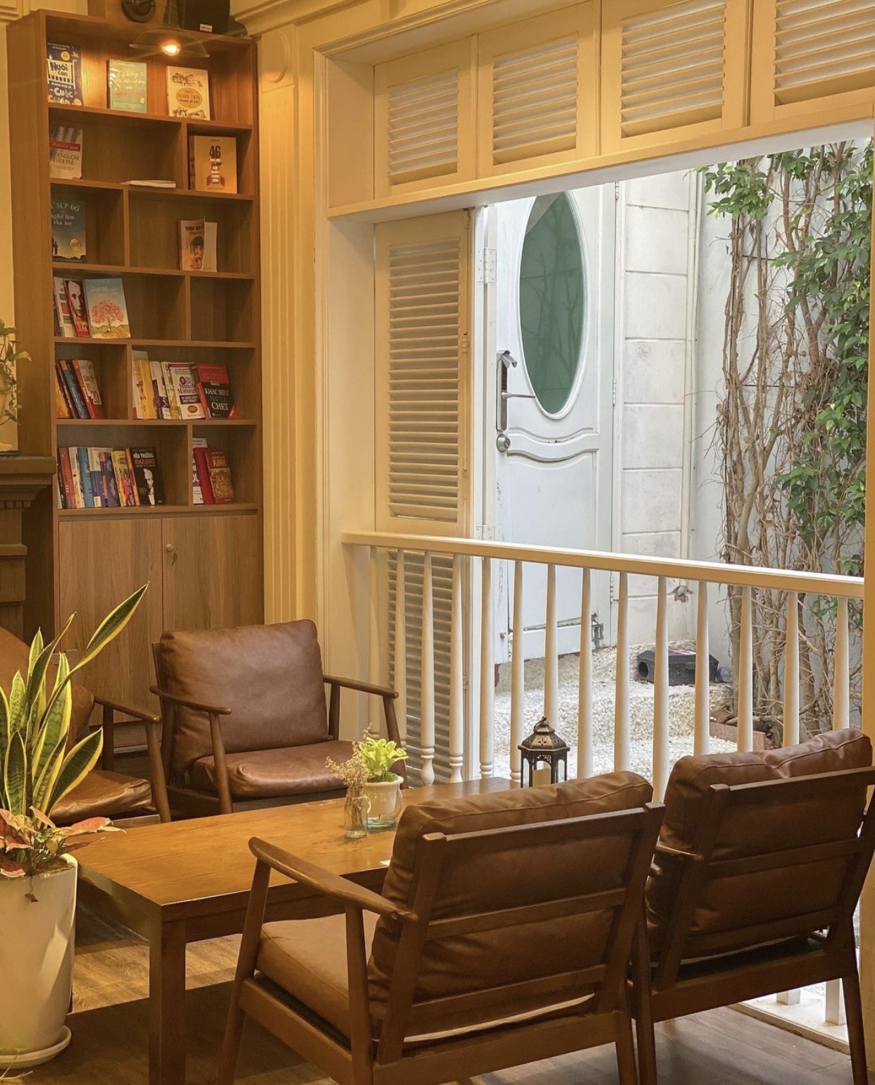 - Tiệm bố trí bàn thấp để ngồi ghế đọc sách và bàn cao để làm việc. Nơi đây cũng thiết kế nhiều góc riêng tư, lý tưởng cho các nhóm nhỏ trao đổi công việc. Quán bật nhạc không lời, phù hợp cho những hoạt động cá nhân cần sự tập trung.