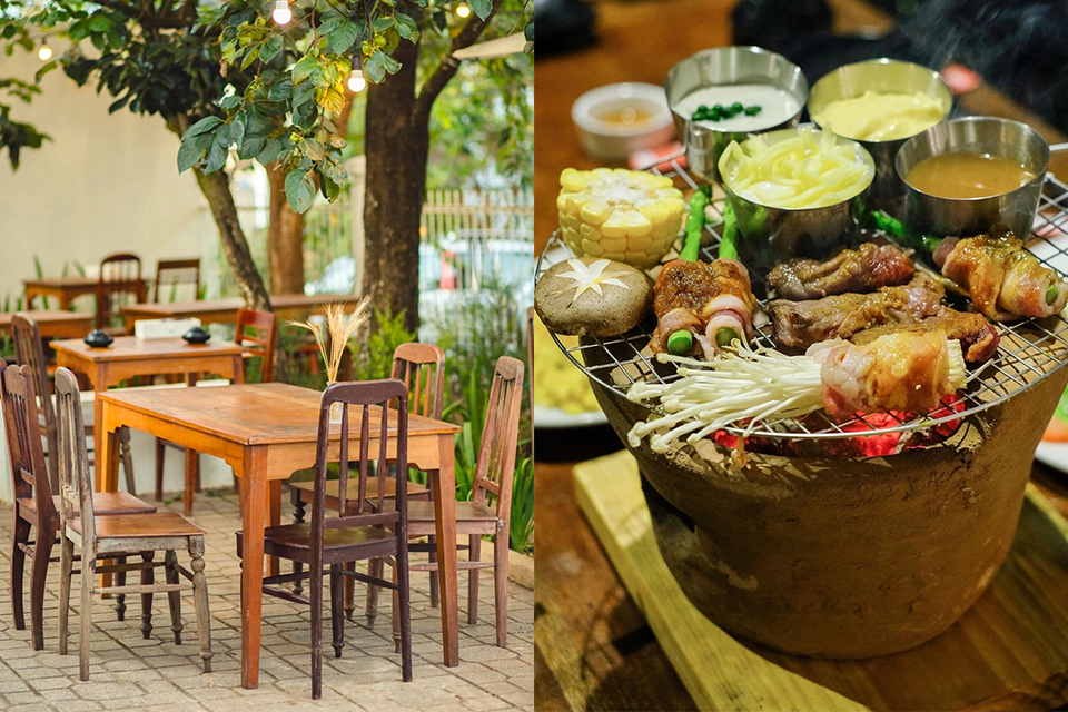 - Thực đơn khá phong phú với các món nướng từ sườn, bò, gà, hải sản... Loạt món ăn chơi có trứng non hoặc sụn heo cháy tỏi, tôm tái chanh, gà nướng sốt tiêu xanh, bò dát vàng áp chảo... Món lẩu hấp dẫn với lẩu gà lá é, lá giang hay lẩu Thái, sườn tảng, sườn tháp. Thức uống nổi bật các loại trà trái cây, rượu nếp sữa, soju.