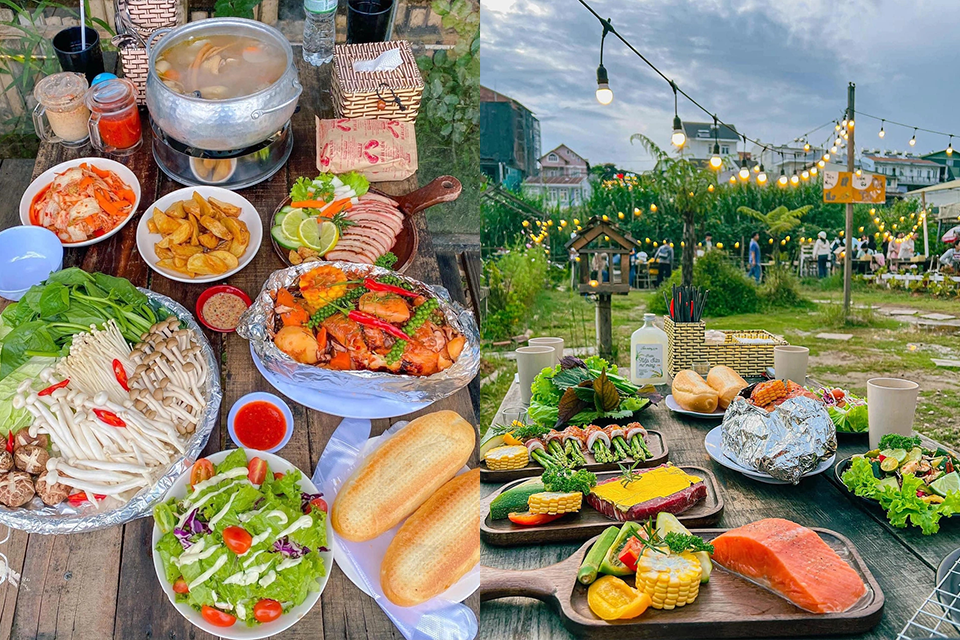 - Nhóm bạn có thể quây quần bên bếp than hồng, cùng nướng thịt, nhâm nhi chút đồ uống để làm ấm cơ thể. Bầu không khí cởi mở, ấm cúng và dễ chịu. Ánh đèn vàng ban đêm làm tăng phần lãng mạn.