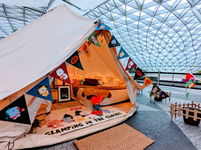 Ngoài ra, các bạn nhỏ còn có cơ hội trải nghiệm chủ đề BT21 'Glampcation in the Clouds' (Cắm trại trên mây) đầu tiên với các nhân vật yêu thích từ nay cho đến ngày 26/6. Mỗi căn lều theo chủ đề BT21 sẽ chứa tối đa bốn khách với những góc chụp hấp dẫn dành cho các "tín đồ" Instagram.