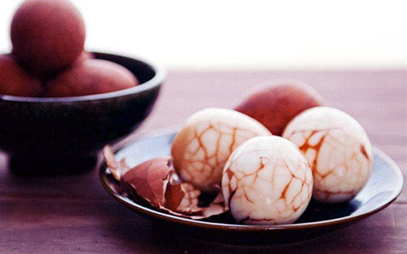 Trà trứng sau khi bóc nhìn giống đá cẩm thạch/ Ảnh: cooky.vn