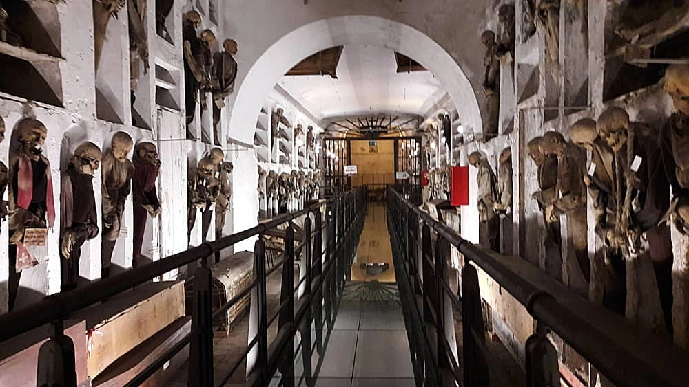 Hầm mộ Palermo Capuchin (Sicily, Italy): Đây là một trong những điểm du lịch hầm mộ nổi tiếng nhất thế giới. Nằm dưới lòng thành phố Palermo, kỳ quan lịch sử này có nhiều hiện vật được bảo tồn tốt, trong đó có cả các xác ướp. Một số được treo lên tường ở vị trí đứng, với trang phục được thay đổi thường xuyên. Ảnh: Sicilianblog.