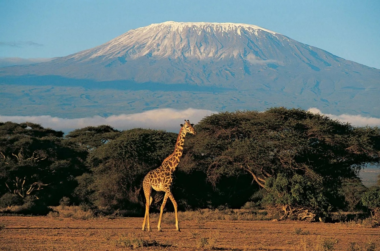Núi Kilimanjaro, châu Phi, 5.895 m: Kilimanjaro với 3 chóp núi lửa hình nón Kibo, Mawensi và Shira, là một núi lửa dạng tầng không hoạt động ở đông bắc Tanzania. Đây là ngọn núi đứng một mình cao nhất thế giới với độ cao 4.600 m từ chân núi và là đỉnh núi cao nhất châu Phi.