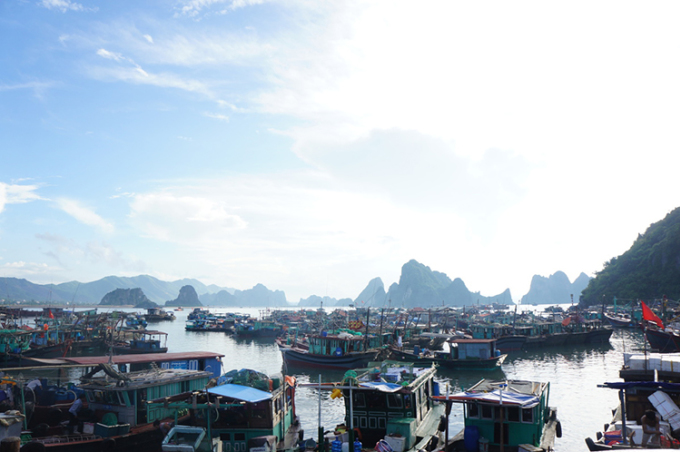 Vịnh có rất nhiều làng chài, và du khách có thể ghé thăm những địa điểm nổi tiếng như Cửa Vạn, Ba Hang, Cống Đầm... cùng trải nghiệm đi câu mực. Trên ảnh là làng chải Cửa Vạn. Ảnh: Hương Chi