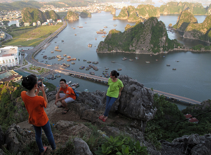 Leo núi là hoạt động nhất định phải làm khi đến đây, theo Joshua. Hòn đảo có các điểm để phục vụ mọi cấp độ leo núi cho người mới bắt đầu đến dân chuyên nghiệp. Một trong những địa điểm thu hút du khách là núi Bài Thơ, đỉnh Ti Tốp. Tại những khu vực này, bạn có thể ngắm trọn thành phố từ trên cao. Ảnh: Lê Bích