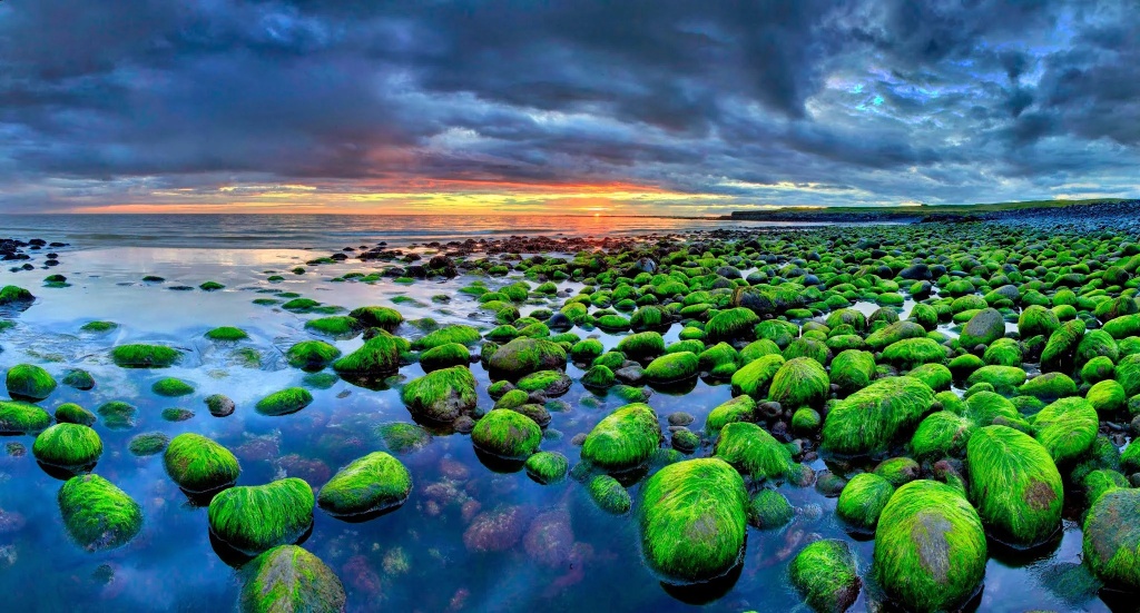 Bãi biển Hvaleyri, Iceland nằm ở vùng Hvalfjörður, được mệnh danh "viên ngọc ẩn" của Iceland. Địa điểm nổi tiếng với làn nước trong vắt cùng khung cảnh thanh bình. Khi thủy triều xuống, Hvaleyri để lộ những phiến đá phủ đầy rêu xanh dưới ánh hoàng hôn, tạo nên bức tranh đẹp như truyện cổ tích. Ảnh: u/HoodedHorse/reddit.
