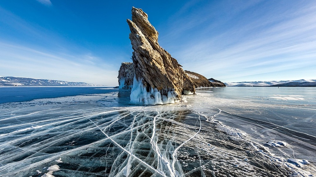 Hồ Baikal (Siberia, Nga): Nằm ở miền Đông Siberia của nước Nga, Baikal không chỉ nổi tiếng là hồ nước ngọt lớn nhất thế giới mà còn là một kỳ quan thiên nhiên độc đáo, với vẻ đẹp có một không hai. Trong đó, cảnh quan hồ Baikal vào mùa đông khi bề mặt bị đóng băng gây ấn tượng cho bất kỳ du khách nào được ngắm nhìn. Nét độc đáo này đến từ sự tích tụ khí mê-tan tan chảy, tạo thành những rãnh nứt dài. Ảnh: Sergey Pesterev.