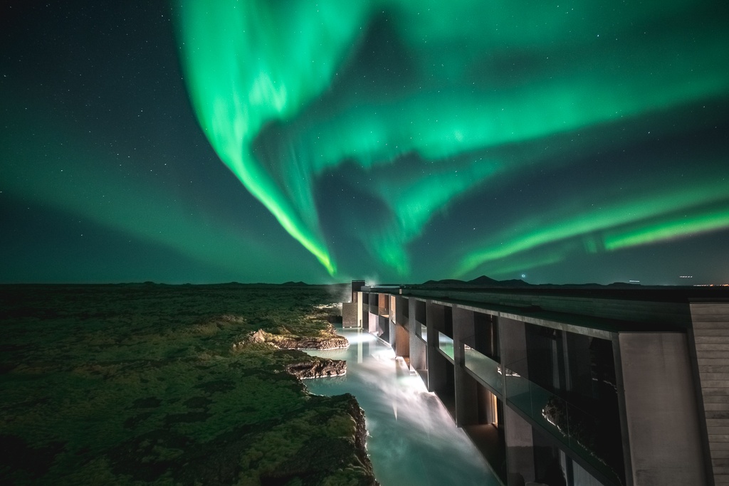 Retreat Hotel, Blue Lagoon, Iceland: Retreat Hotel là một khu nghỉ dưỡng sang trọng bao gồm một khách sạn 62 dãy phòng, một spa dưới lòng đất, nhà hàng do Michelin đề xuất và một đầm phá riêng. Ngoài cái trải nghiệm nghỉ dưỡng sang trọng, du khách còn có cơ hội chiêm ngưỡng cực quang tuyệt đẹp. Ảnh: NUVO Magazine.