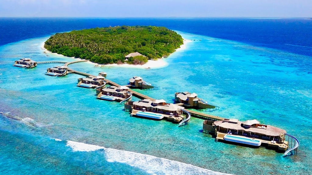 Soneva Fushi, Maldives: Đây là điểm đến cho du khách trải nghiệm trượt mình trong làn nước trong vắt của Ấn Độ Dương, chiêm ngưỡng hoàng hôn và ngắm nhìn những vì sao qua mái nhà. Soneva Fushi được mệnh danh viên ngọc quý của Maldives. Các căn biệt thự của khu nghỉ dưỡng rộng rãi, thiết kế sang trọng, có hồ bơi nước ngọt và phòng tắm ngoài trời. Ảnh: The Luxury Travel Expert.
