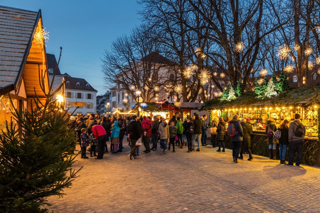 Chợ Giáng sinh Basel, Thuỵ Sĩ: Khu chợ nổi tiếng này được chia làm hai phần, Barfusserplatz và Munsterplatz. Tại đây, hơn 200 gian hàng được trang trí bắt mắt, bày bán các loại gia vị, đồ trang hoàng và nến cho Giáng sinh. Ảnh: Basel.