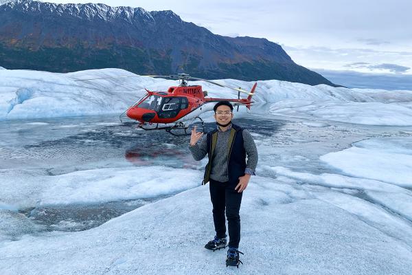 Ngô Xuân Công háo hức khi lần đầu được đi trực thăng, sau đó bước đi trên những núi băng hùng vĩ và uống nước tinh khiết tại Alaska.