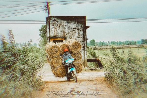 Xe máy được “chế” thêm phần khung sắt để thuận tiện cho việc chở rơm