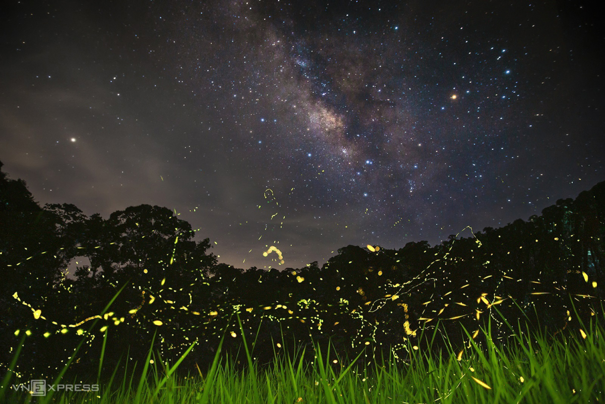 Từ tháng 4-8 là thời tiết đẹp, có nắng, ít mưa bão là thích hợp để quan sát côn trùng. Góc rừng xóm Bống, cách cổng vườn 20 km, là một trong những điểm để ngắm và chụp ảnh đom đóm đẹp nhất. Trong lúc khám phá mùa đom đóm, du khách cũng có thể chụp được dải ngân hà vào những ngày trời trong và không có trăng. Giá vé vào cửa với người lớn là 60.000 đồng, học sinh - sinh viên là 20.000 đồng, trẻ em là 10.000 đồng, miễn phí với trẻ dưới 5 tuổi. Ảnh: Nguyễn Hữu Thông