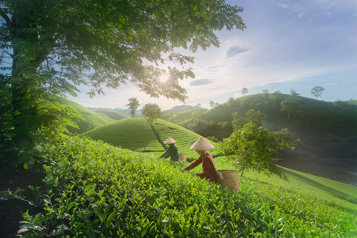 Các đồi chè Long Cốc (Phú Thọ), Mộc Châu (Sơn La) và Ô Long (Lào Cai) đang vào mùa săn sương và mây đẹp nhất.