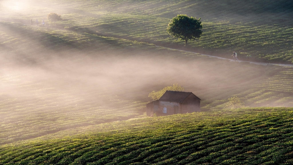 Màn sương sớm ở Mộc Châu trên những con đường nhỏ vào phía sâu trong đồi chè.