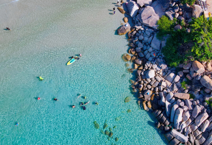 Đảo Bình Ba có phong cảnh nên thơ. Ảnh: Rùa Hay Xỉn "Chung số phận" với đảo Bình Hưng, đảo Bình Ba cũng nằm trong danh sách cấm hoạt động du lịch. Hai hòn đảo này từng thuộc cụm bốn đảo "Tứ Bình": Bình Ba, Bình Hưng, Bình Tiên, Bình Lập, nổi tiếng trong giới du lịch. Bình Ba cách TP Nha Trang 60 km về phía nam, cách TP HCM 400 km, có diện tích khoảng 3 km2, gồm các bãi tắm hoang sơ, nước xanh trong vắt như bãi Nồm, bãi Nhà Cũ, bãi Chướng, bãi Sa Huỳnh...