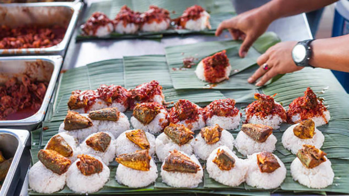 Nasi lemak là đại diện đến từ Malaysia, còn được biết đến với tên gọi khác là "món ăn quốc dân", gồm cơm, dừa ăn kèm cá cơm mặn, đậu phộng rang, trứng luộc, dưa chuột và nước sốt sambal. Tất cả được bày trên một miếng lá chuối cắt nhỏ. Món ăn này cũng có nhiều biến thể, du khách có thể ăn kèm gà rán, cà ri, cá hoặc trứng rán. Ảnh: Adobe Stock