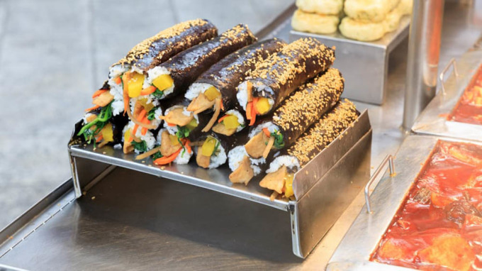 Tại Hàn Quốc, đại diện cho ẩm thực đường phố là gimbap, món ăn được chế biến đơn giản nhưng không kém phần hấp dẫn từ rong biển, cơm nóng có nhân là các loại rau củ như cà rốt, dưa chuột, rau cải, trứng, xúc xích...Bánh gạo cay tteokbokki cũng là một gợi ý để khách thêm lựa chọn. Ảnh: Adobe Stock