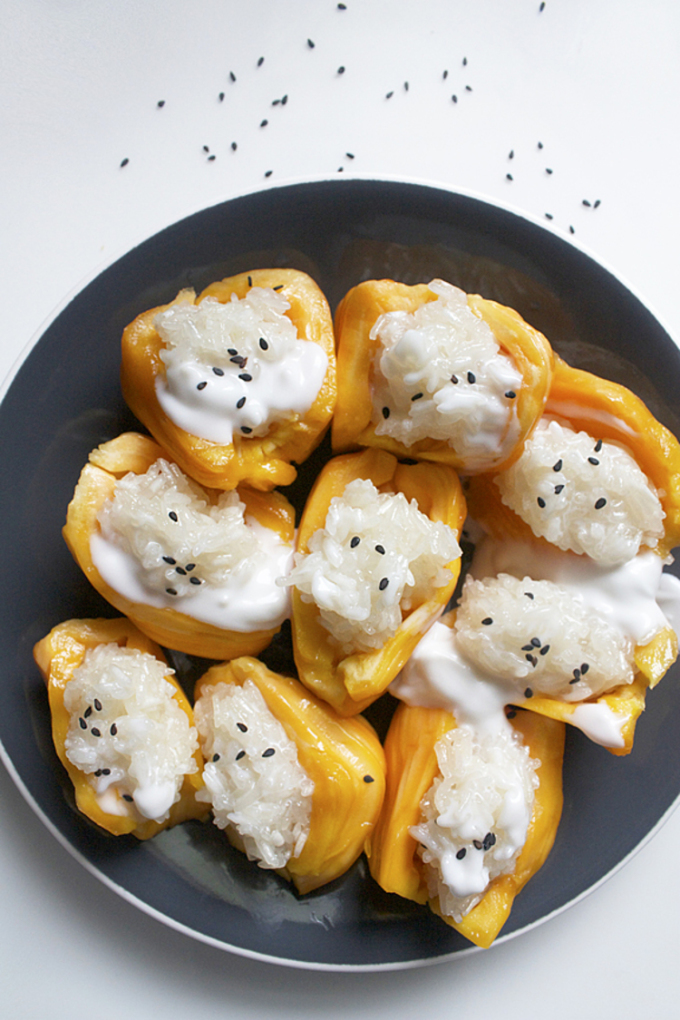 Người Thái Lan thích ăn ngọt, nên các món mặn như xôi cũng có thể kết hợp cùng trái cây. Ảnh: PinterestKhao Niao Kanun (Xôi mít)