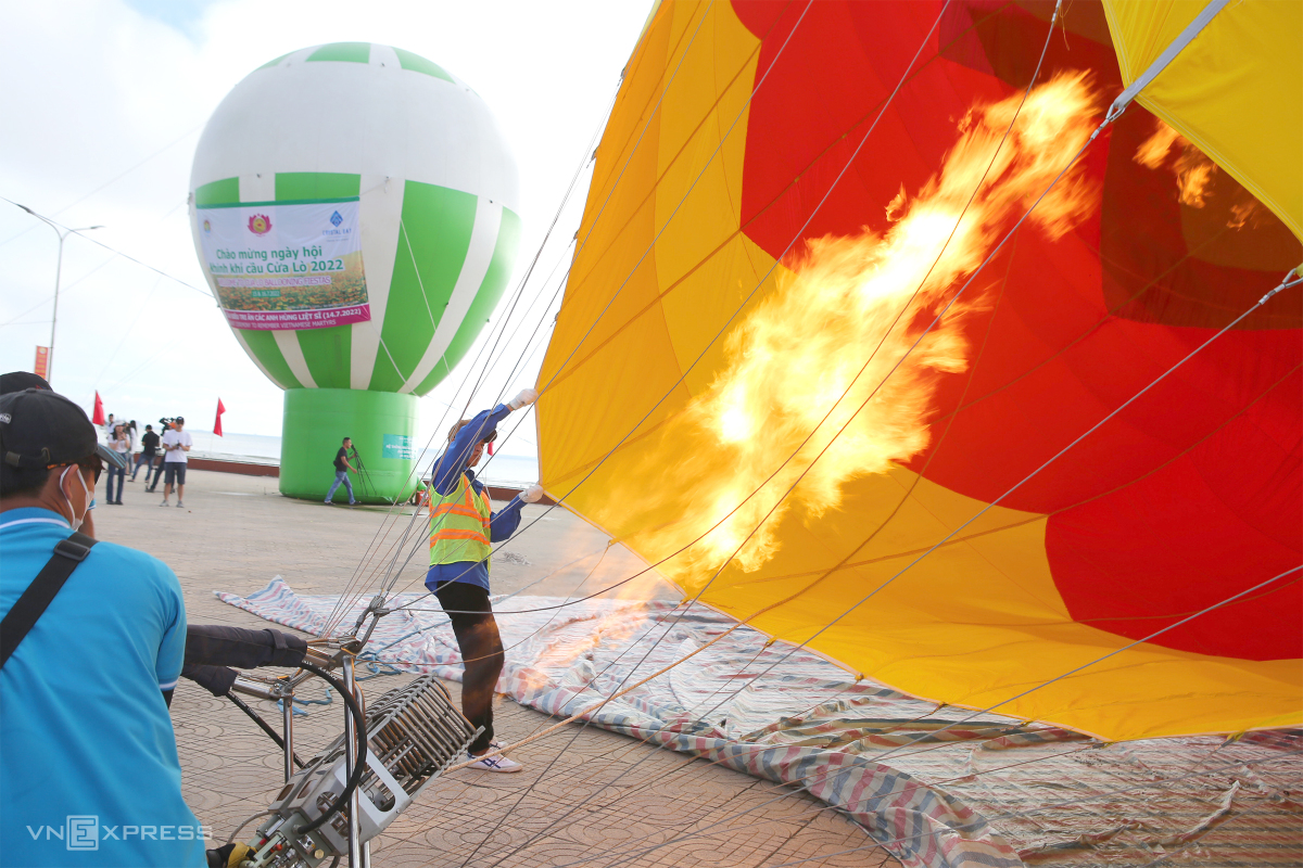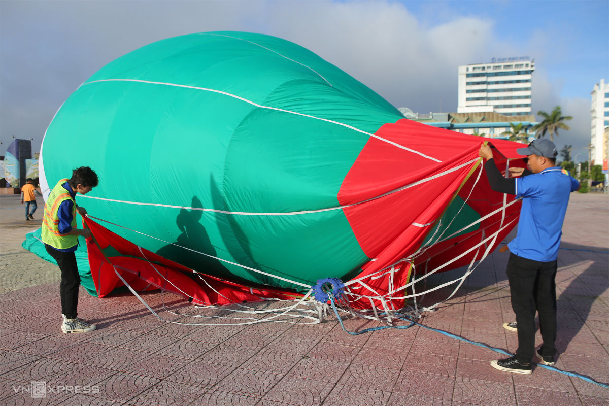 Sáng 15/7, UBND thị xã Cửa Lò phối hợp với một doanh nghiệp tổ chức trình diễn khinh khí cầu tại khu vực quảng trường Bình Minh, sát bãi tắm.