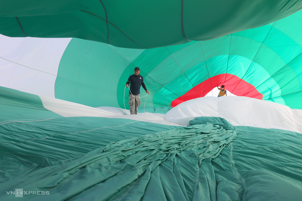 Bên trong khinh khí cầu dài gần 25 m, rộng 17 m lúc được thổi không khí.