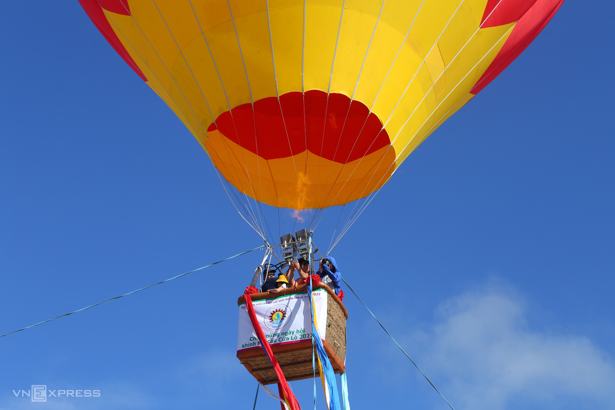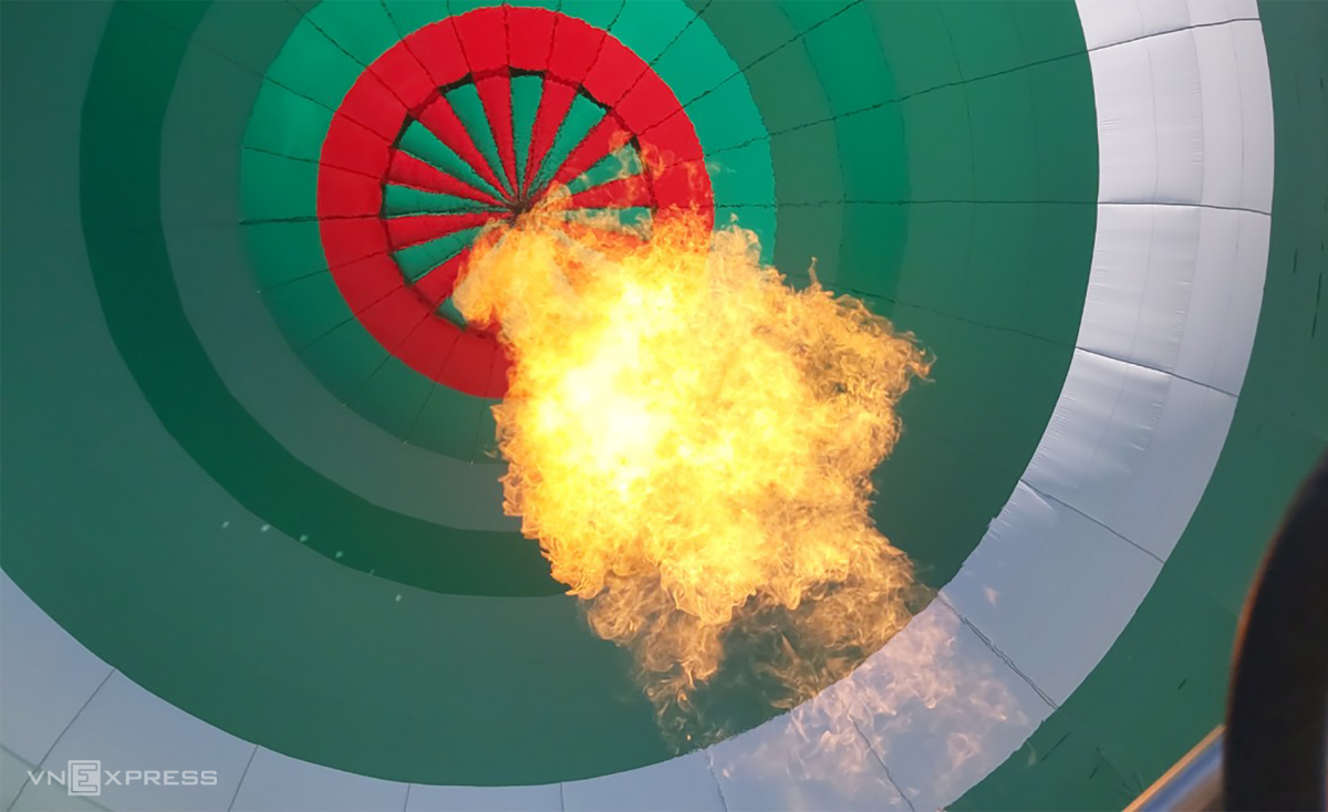 Lúc khinh khí cầu bay lên cao sẽ được nạp thêm lửa để làm nóng. Thời gian mỗi lượt trải nghiệm khoảng 4-6 phút. Ước tính có hàng trăm người đã bay thử trong vài giờ sáng nay.