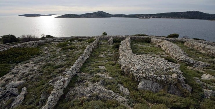 Địa hình đá và gió mạnh không lý tưởng cho việc trồng cây, vì vậy cư dân của hòn đảo Kaprije gần đó đã xây những bức tường đá này để ngăn cách, đánh dấu ranh giới giữa các mảnh đất liền kề nhau và bảo vệ chúng.