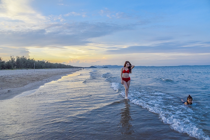 Tận hưởng sự bình yên của biển. Ảnh: Hồ Sỹ Minh