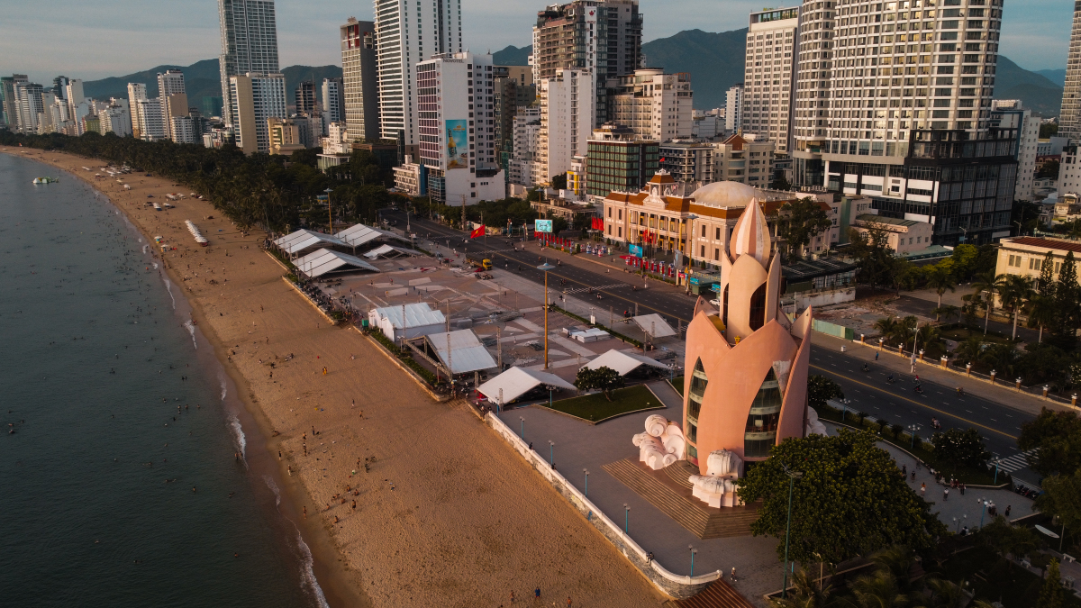 Quảng trường 2 tháng 4 nằm giáp biển là một trong những địa điểm mang tính biểu tượng của thành phố, nơi người dân và du khách tản bộ, vui chơi, chụp ảnh lưu niệm. Những ngày qua, chính quyền tổ chức Techfest vùng Nam Trung Bộ và Tây Nguyên 2022 nên quảng trường được sử dụng làm nơi triển lãm, trưng bày các sản phẩm công nghệ.